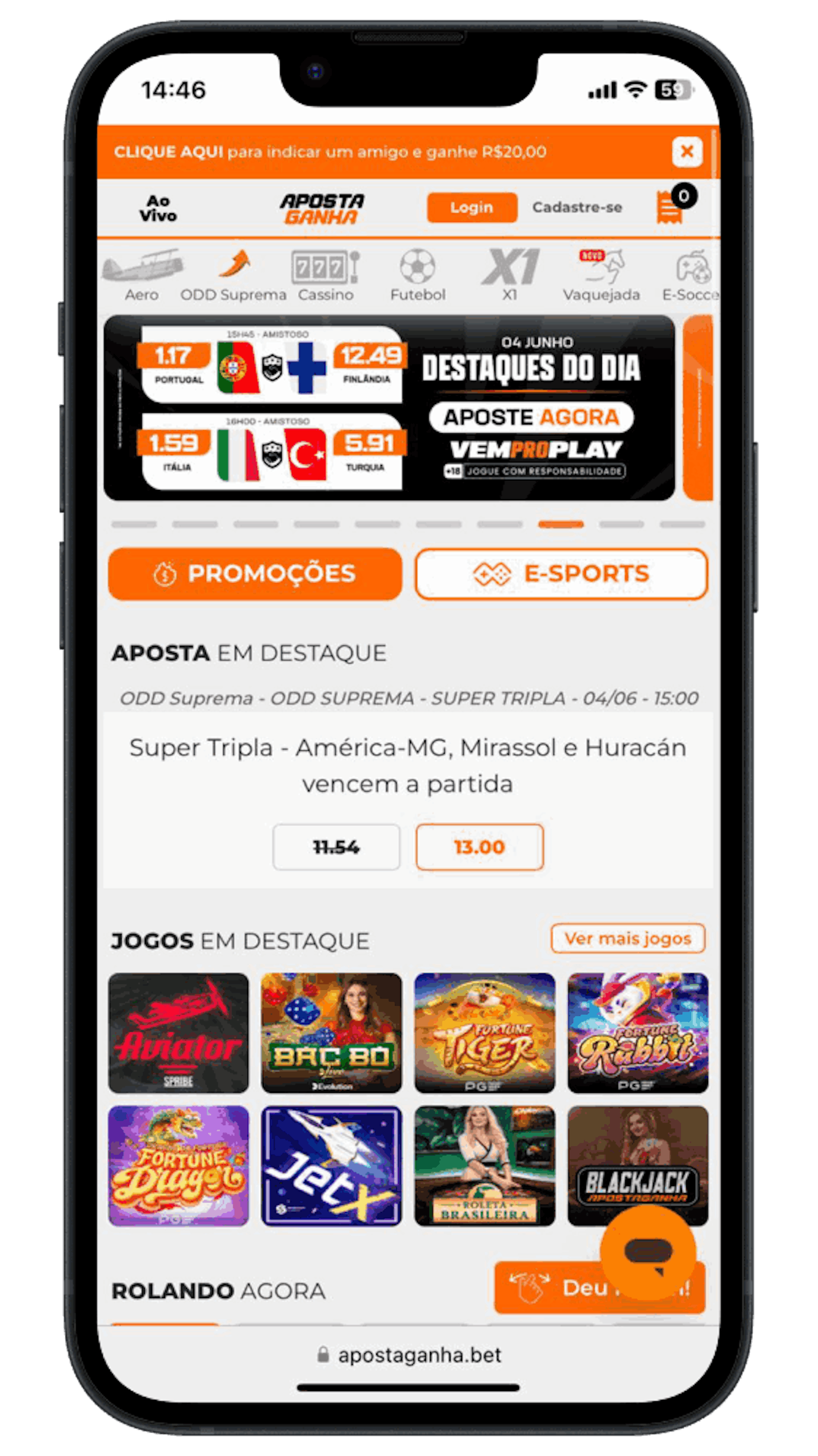 Disponível somente para Android, o app Aposta Ganha pode ser baixado no site oficial e te permite realizar todas as ações feitas no navegador, como apostar, fazer saques e depósitos e muito mais.