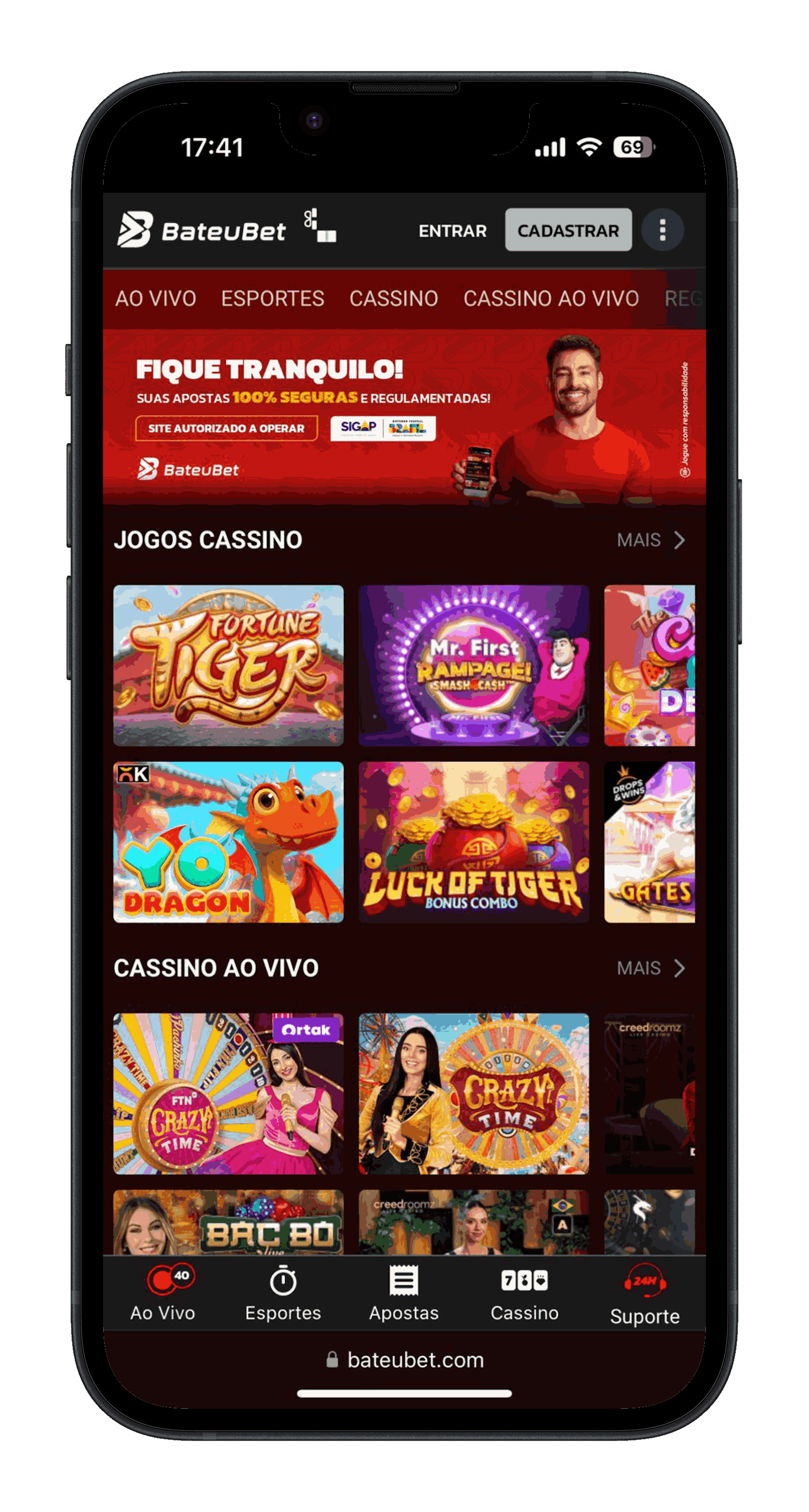 O cassino Bateubet é um destaque bem positivo da plataforma. Nele, você encontra muita variedade de jogos virtuais e jogos crash. Alguns exemplos relevante são o Fortune Tiger, Aviator, Mines, Fortune Mouse, Spaceman e Gates of Olympus.