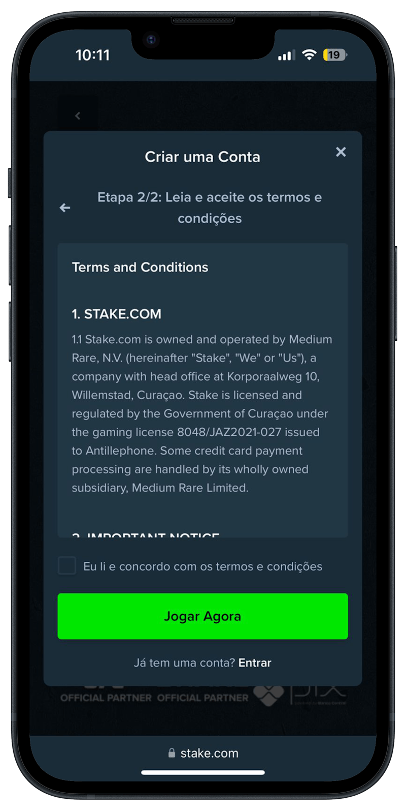 Para ativar o código de bônus Stake, é preciso criar a sua conta no site. O processo inicial de abertura é bem simples e você finaliza em poucos passos.